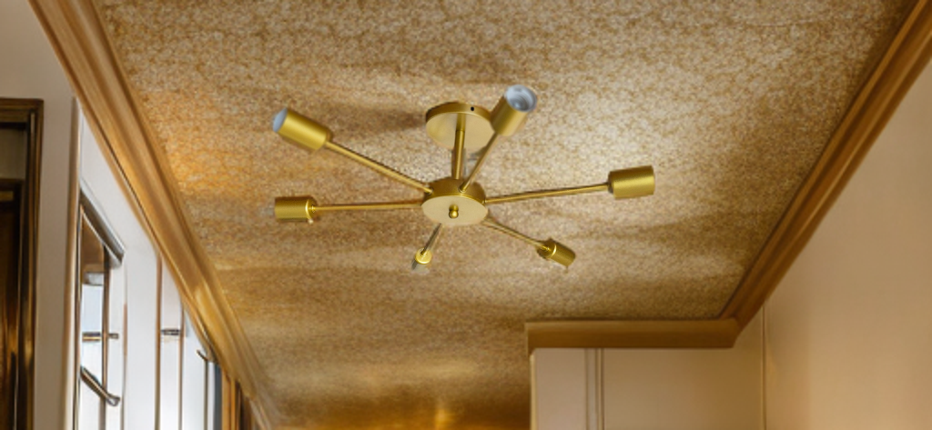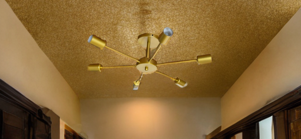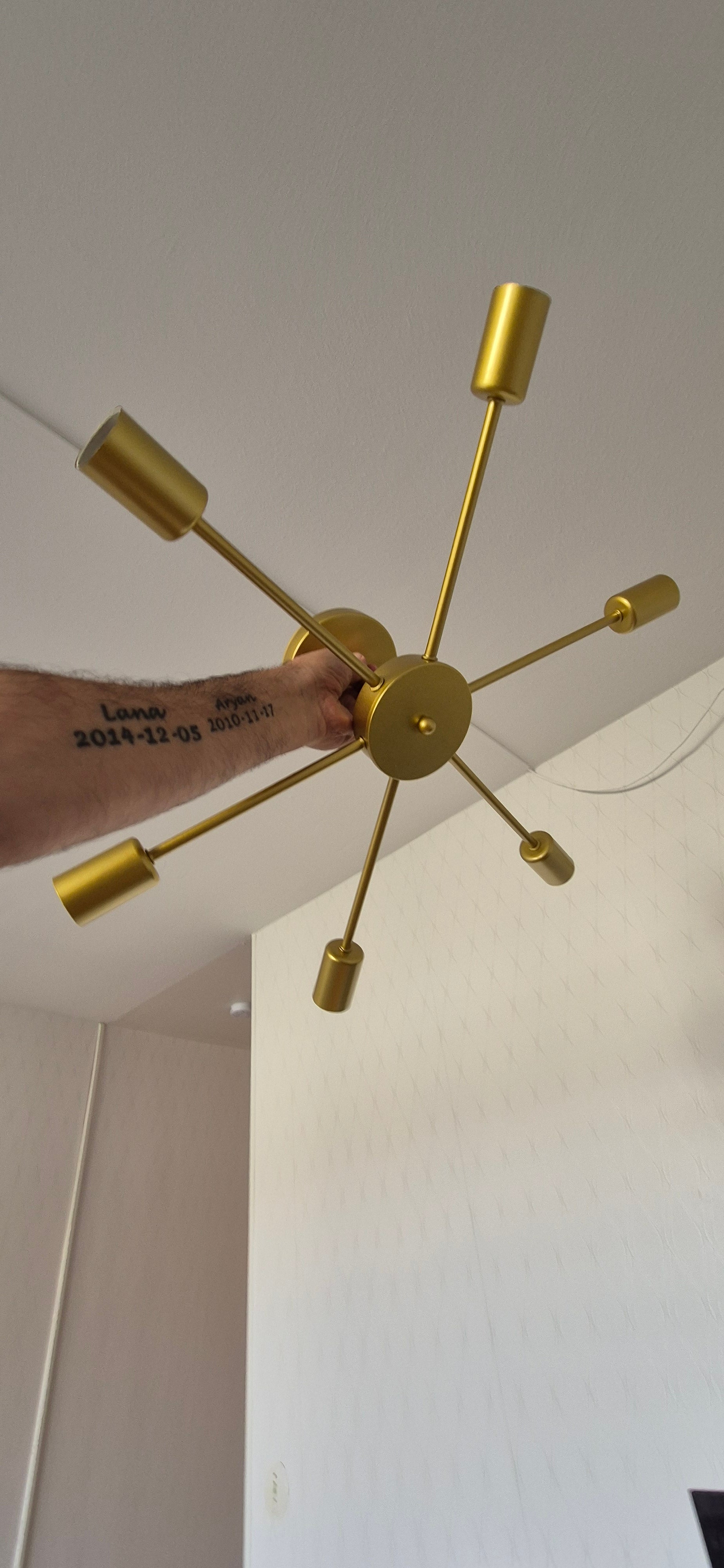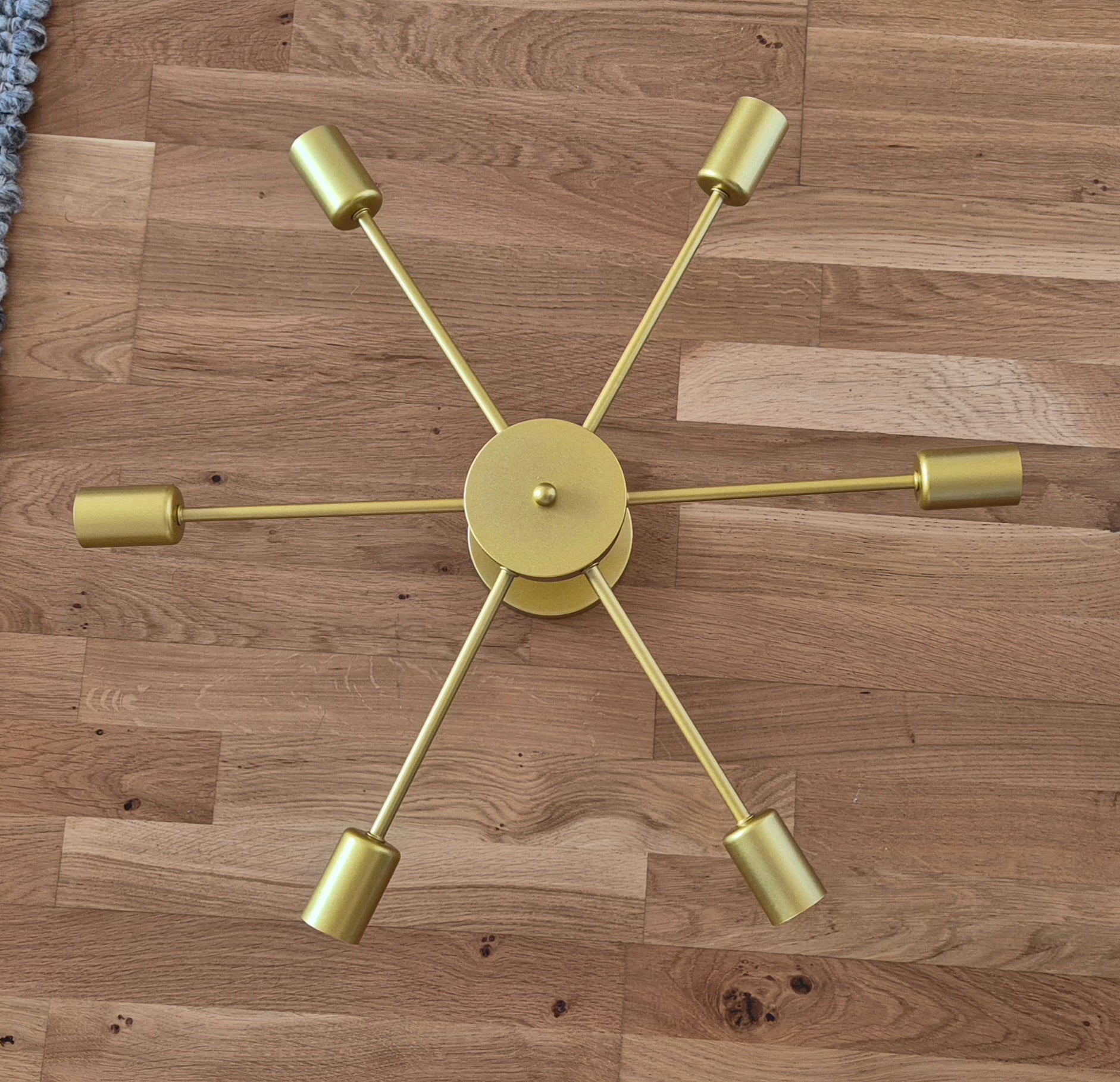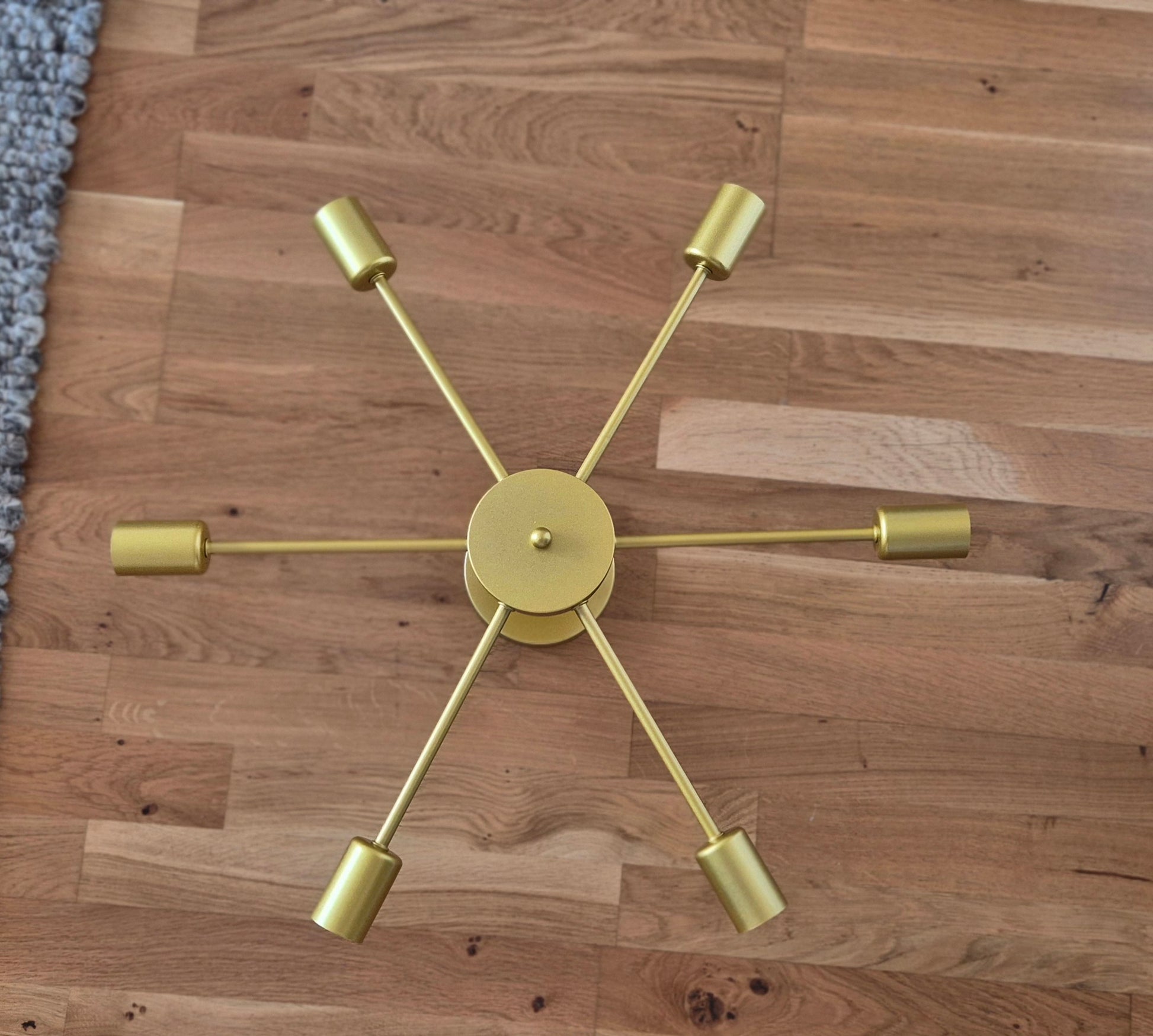 1 st industriell 6-armad taklampa i guldfärg – E27 sockel