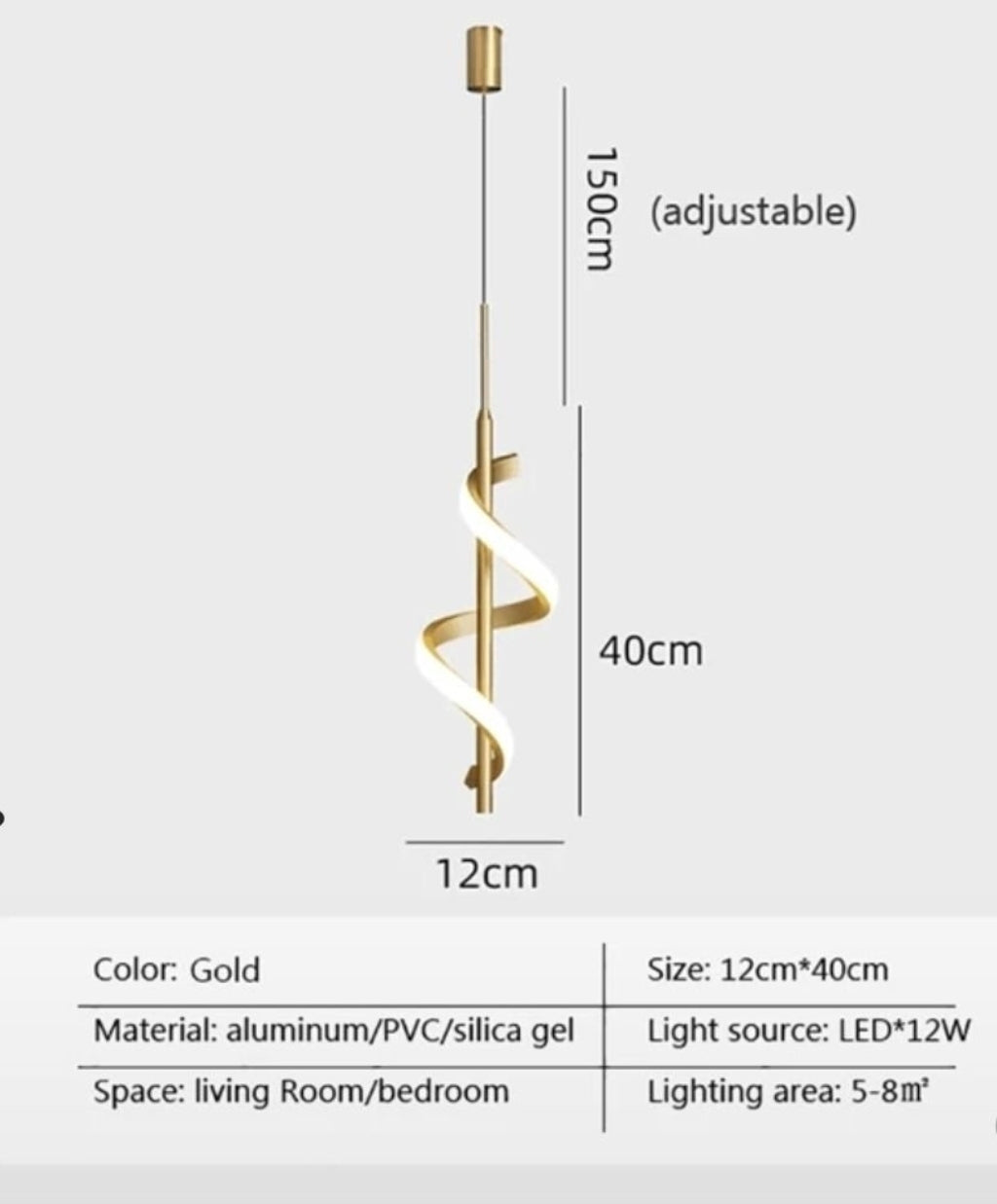 Lyft din inredning till nya höjder med denna sofistikerade LED-pendellampa i spiralform – ett perfekt möte mellan modern design och funktionell konst. Med sina rena linjer, lyxiga guldfinish och ett behagligt dimbart ljus är den en iögonfallande detalj för det stilmedvetna hemmet.