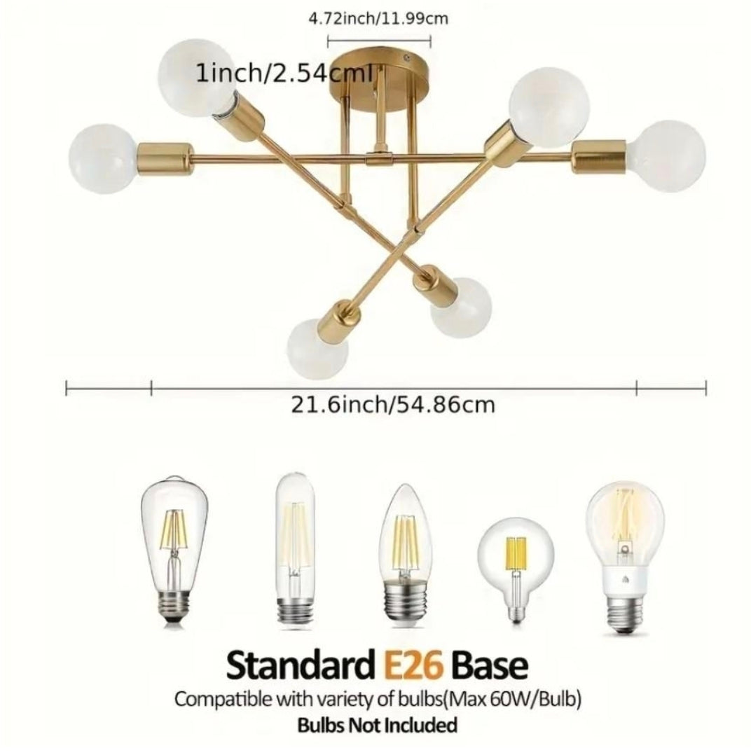 Modern 6-armad Takkrona i Metall – Industriell Stil – E27 Sockel – För Vardagsrum, Kök, Sovrum