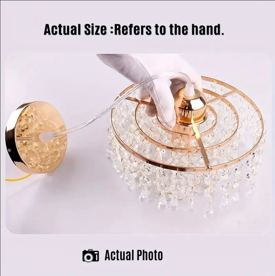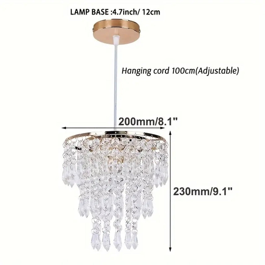 Skapa en lyxig och mysig atmosfär i ditt hem med denna moderna mini-kristallkrona. Med sin eleganta 3-vånings regndroppsdesign och guldfinish passar den perfekt i flickors sovrum, vardagsrum, matsal eller entré. Den kompakta storleken gör den idealisk även för mindre utrymmen.