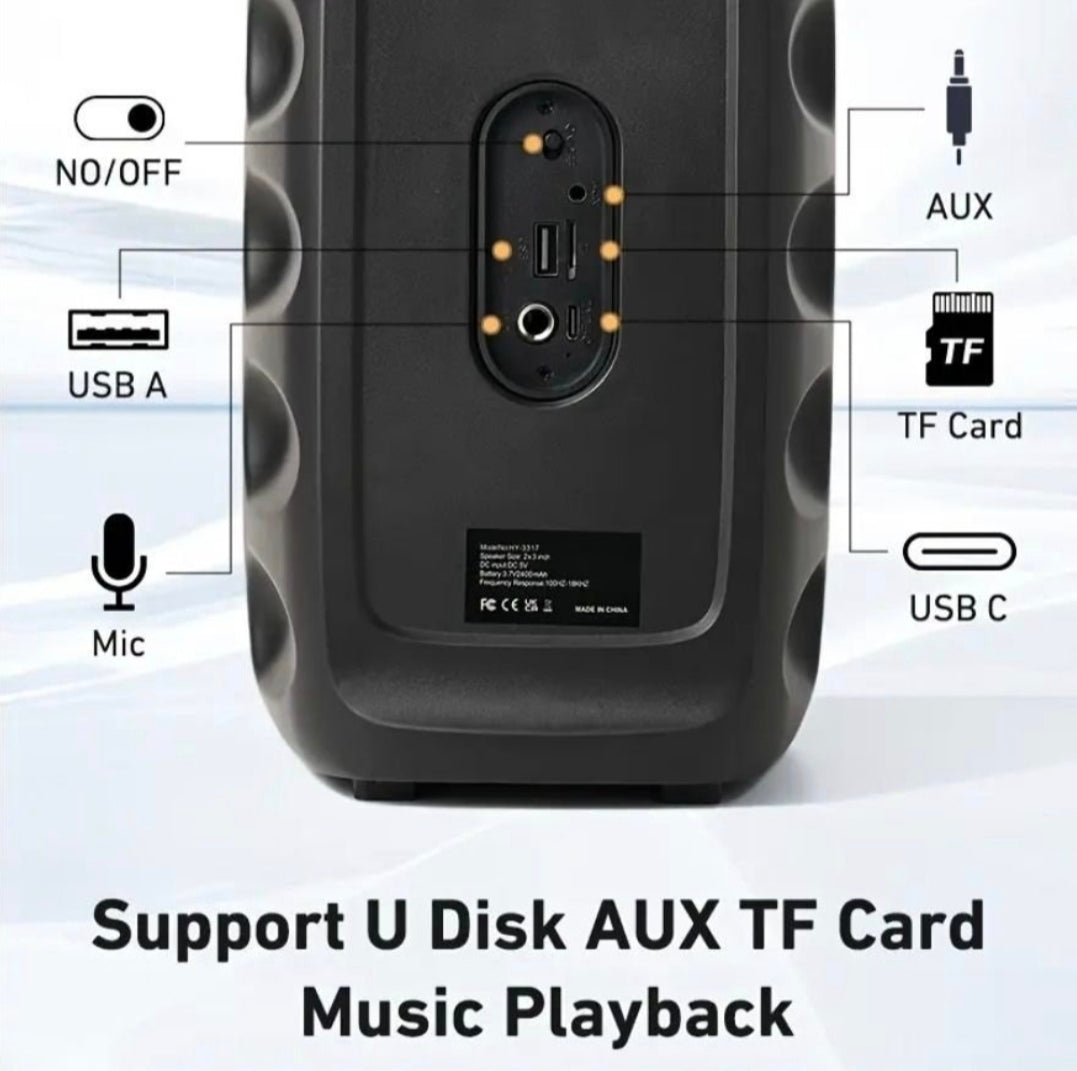 Lyft dina evenemang med denna kompakta men kraftfulla Bluetooth-högtalare med inbyggd subwoofer, mikrofon och färgsprakande RGB-belysning – perfekt för fester, karaoke, presentationer och mer!