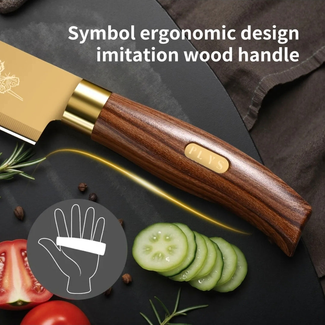 Premium Gyllene Titanbelagda Köksknivset – 4-delars Lyx och Precision för Kökets Alla Uppgift