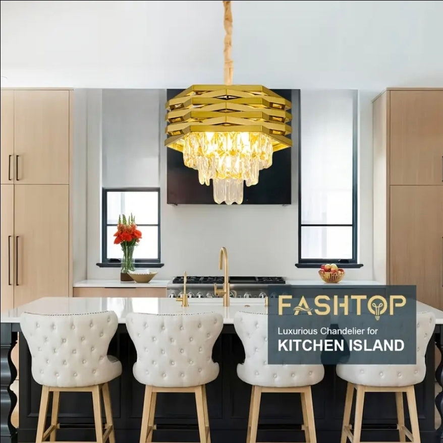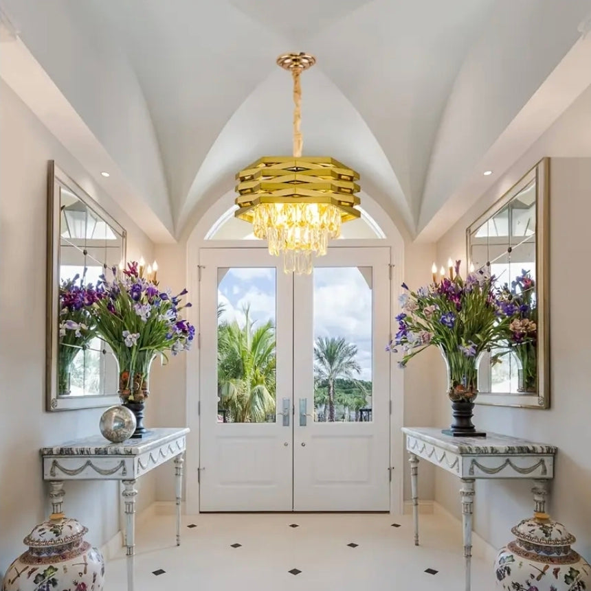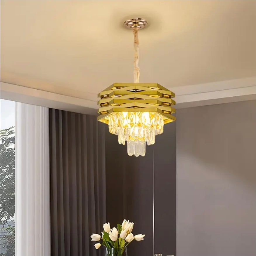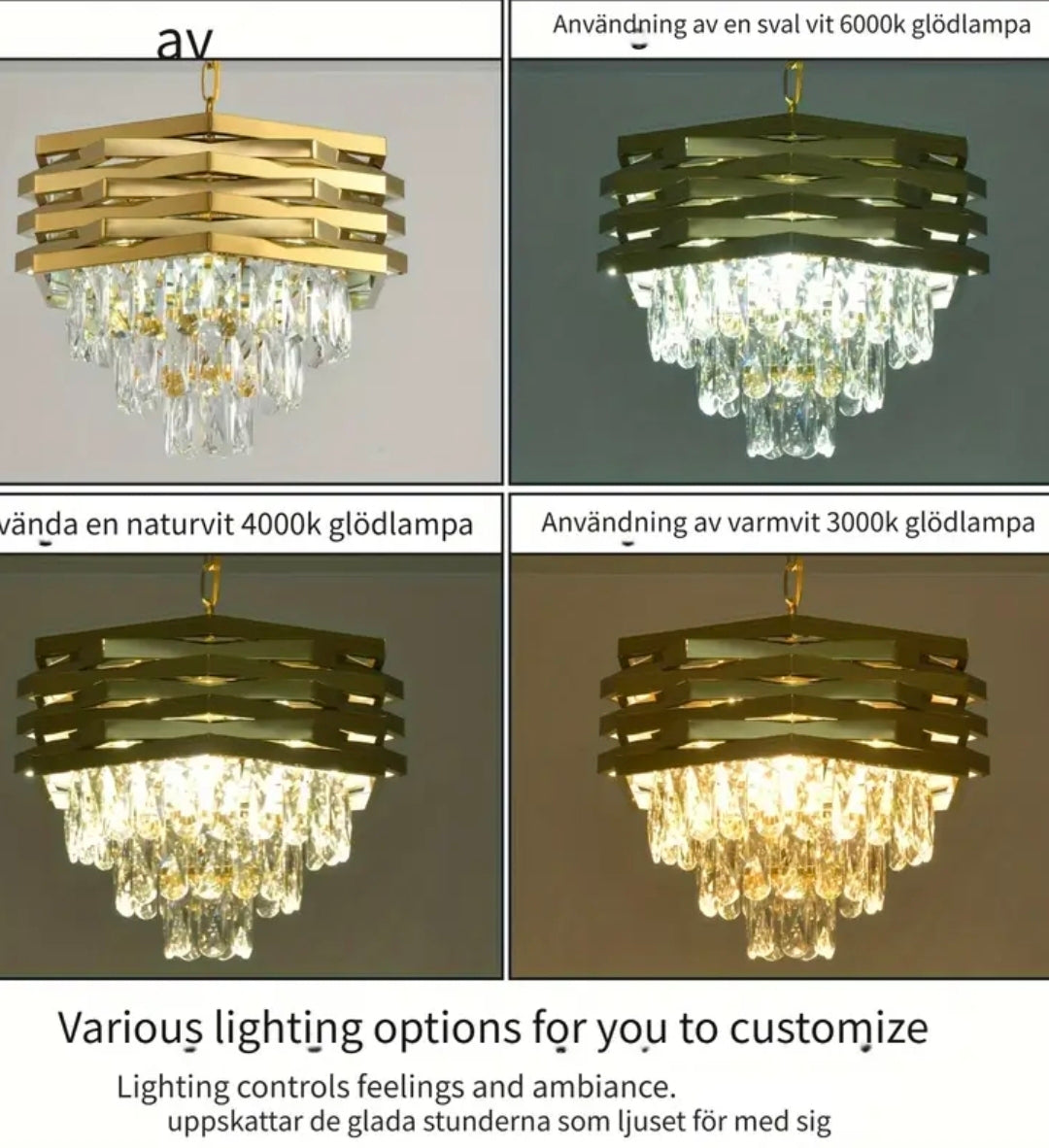 Stilfull Modern Ljuskrona i Guld med Kristall